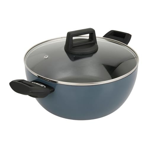 Sitram 715448 Faitout Aluminium recyclé RAVIVE Ø 26 cm H 11 cm Revêtement intérieur Whitford Xylan 2 couches sans PFOA - Coloris Bleu - Avec couvercle vapeur en verre - Tous feux dont induction