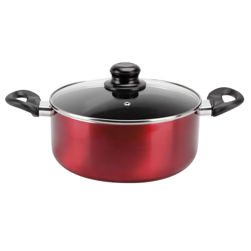 Sitram 712390 Faitout en Aluminium pressé CHERRY Ø 24 cm - Revêtement anti-adhésif - Coloris Rouge métallisé - Couvercle Vapeur en Verre inclus - Tous feux dont induction