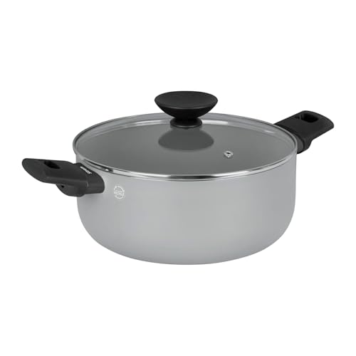 Sitram 716955 Faitout en aluminium gris SILICE Ø24 cm H.6,5 cm - Revêtement Antiadhésif Sain en Céramique garanti sans PFAS - Poignées thermorésistantes + couvercle en verre - Tous feux dont induction