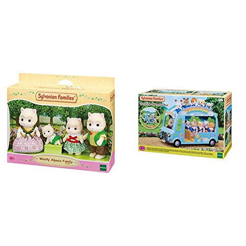 SYLVANIAN FAMILIES-La Famille alpaga Poupées et Accessoires, 5358, coloré & Le Bus Arc-en-Ciel Animaux Mini-Univers, 5317, Multicolore