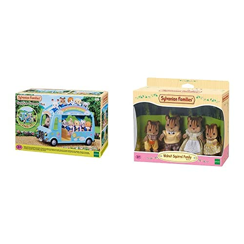 SYLVANIAN FAMILIES-Le Bus Arc-en-Ciel Animaux Mini-Univers, 5317, Multicolore & 4172 Famille Ecureuil Roux - Gris