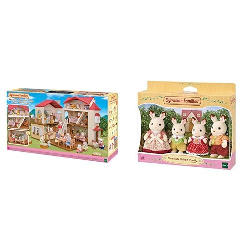 SYLVANIAN FAMILIES - La Grande Maison éclairée et sa pièce secrète - 5716 - Maison de poupées - Mini poupées & 5655 La Famille Lapin Chocolat Colorful Nouveau Packaging