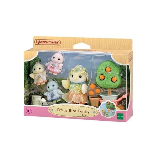 Sylvanian Families - La Famille Oiseau Citrus - Set 4 Figurines articulées - Plongez dans l'univers de la Famille Sylvanian - Figurines Animaux Miniatures - Jouet Enfant 3 Ans et +| 5860