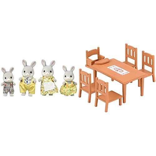 SYLVANIAN FAMILIES - Le Village - La Famille Lapin Gris - 4030 - Famille 4 Figurines - Mini Poupées & Le Village - La Table de Repas - 4506 - Meubles et Accessoires Poupée - Mini Poupées