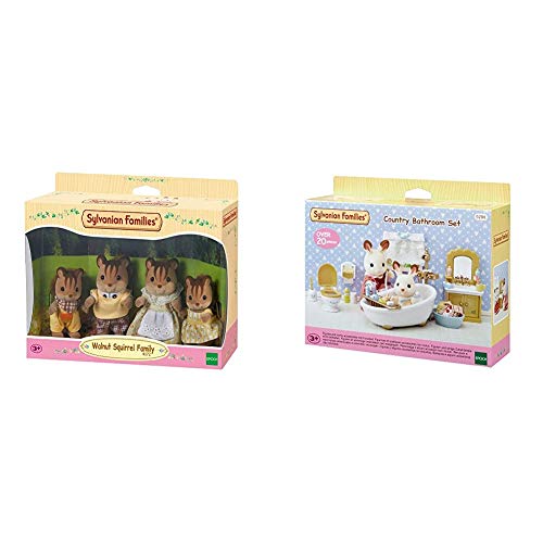 SYLVANIAN FAMILIES - 4172 Famille Ecureuil Roux - Gris & 5286 Set Salle De Bain, 5286, Multicolore