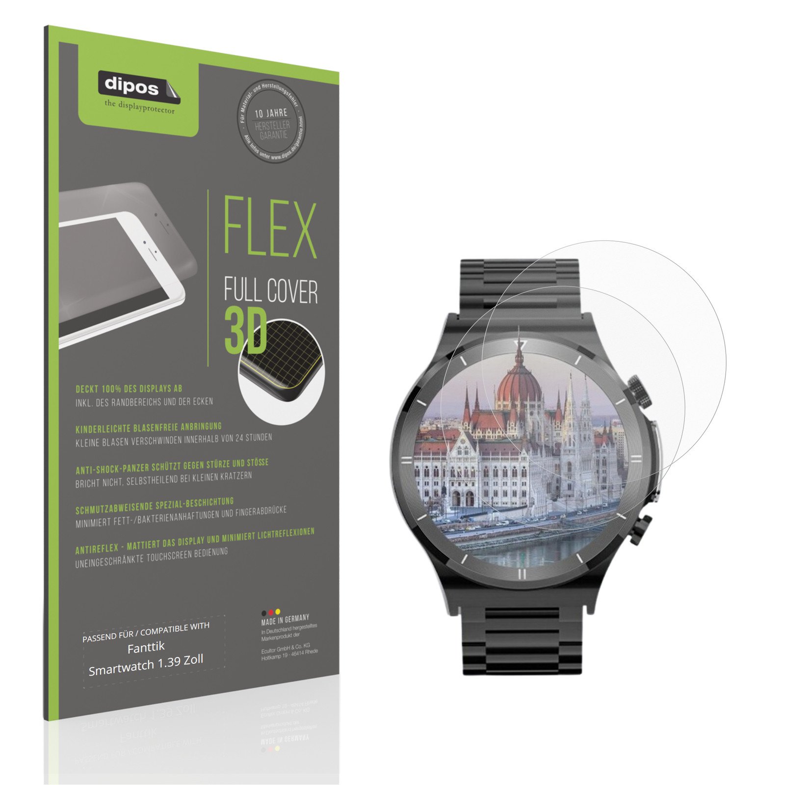 2x Film de protection d'écran pour Fanttik Smartwatch 1.39 Zoll, recouvre 100%