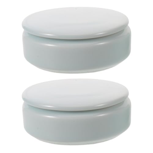 SKISUNO Lot de 2 mini pots à crème ronds en céramique : pots de rangement cosmétiques de 30 ml avec couvercles, style vintage, pour fard à joues, lotion, idéal pour la maison ou les voyages.