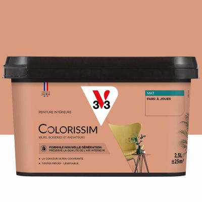 Peinture murs, boiseries et radiateurs beige fard à joue mat V33 Colorissim 0.5 L