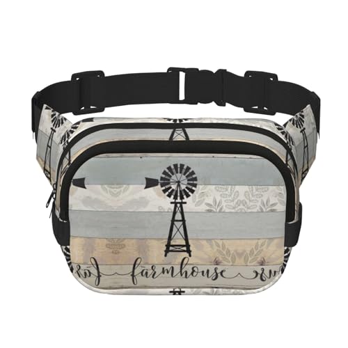 Farm House Sac banane carré double couche avec imprimé intégral, tissu sergé durable, sac banane multi-poches pour sports de plein air, voyage