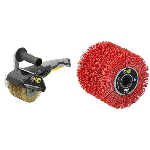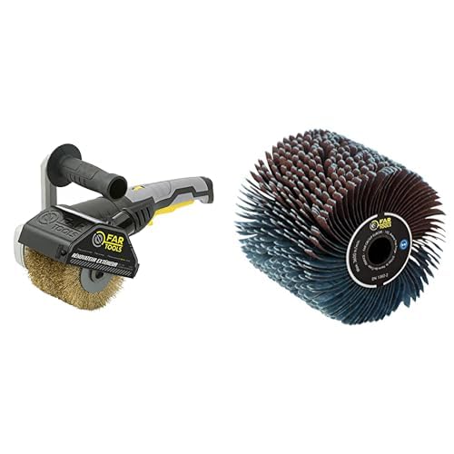Fartools REX 80 Rénovateur compact 420W, brosse à lamelles Ø80mm/L100mm, 1000-3200tr/min & 110869 Brosse à lanières abrasives Ø120mm-L 100mm Compatible avec Rénovateur REX120, REX200