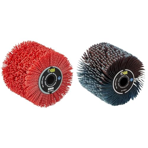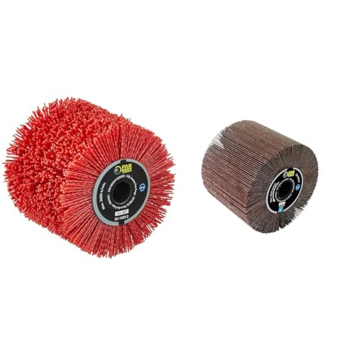 Fartools 110873 — Brosse en Fibres synthétiques pour rectifieuse REX120 C, REX200, REX-H200 diamètre 120 mm Rouge & 110869 Brosse à lanières abrasives Ø120mm-L 100mm Compatible