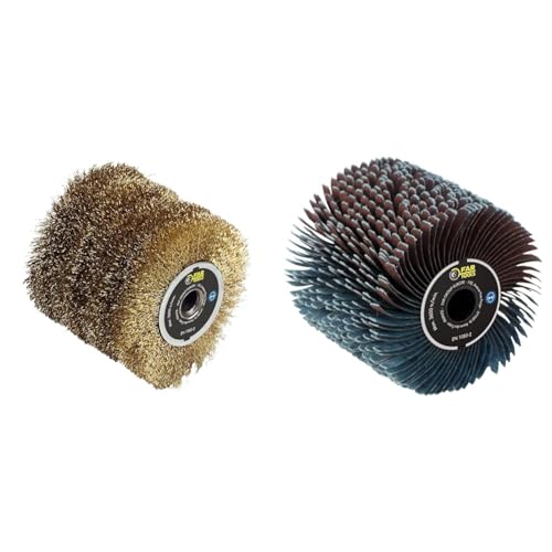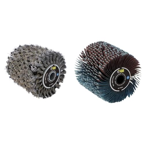 Fartools 110884 Brosse Fibre Métal Torsadé pour Rénovateur & 110869 Brosse à lanières abrasives Ø120mm-L 100mm Compatible avec Rénovateur REX120, REX200 et REX-H200 pour poncer/dégriser