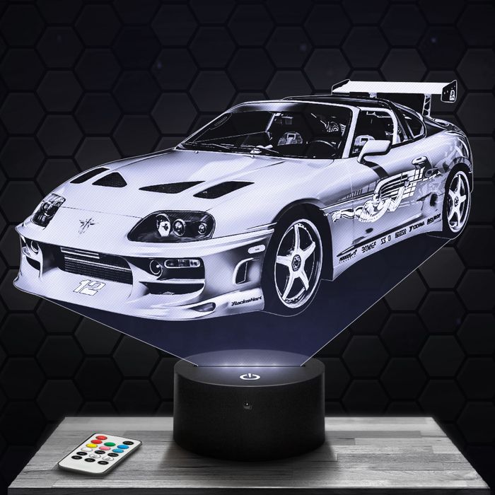 Lampe 3D - Toyota Supra Fast And Furious - Jouet Miniature Cadeau Fast And Furious - Veilleuse Led Tactile avec socle au choix