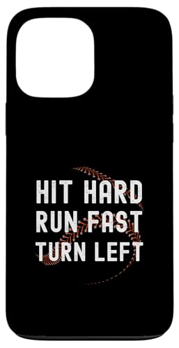 Hit Hard Run Fast Turn Left Baseball Softball Pun Baseballer Coque pour iPhone 13 Pro Max