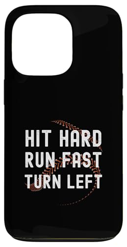 Hit Hard Run Fast Turn Left Baseball Softball Pun Baseballer Coque pour iPhone 13 Pro