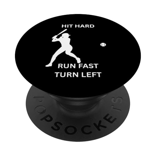 Hit Hard Run Fast Turn Left Joueur de Baseball pour Femme PopSockets PopGrip Adhésif
