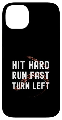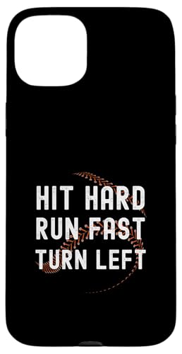 Hit Hard Run Fast Turn Left Baseball Softball Pun Baseballer Coque pour iPhone 15 Plus