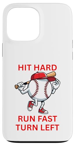 Design de Joueur de Baseball Hit Hard Run Fast Turn Left Coque pour iPhone 13 Pro Max