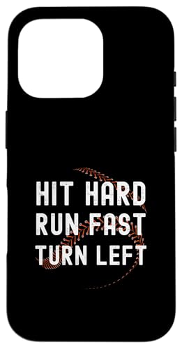 Hit Hard Run Fast Turn Left Baseball Softball Pun Baseballer Coque pour iPhone 16 Pro
