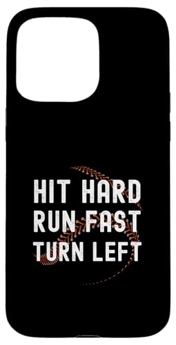 Hit Hard Run Fast Turn Left Baseball Softball Pun Baseballer Coque pour iPhone 15 Pro Max