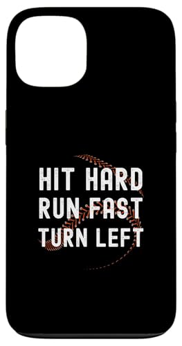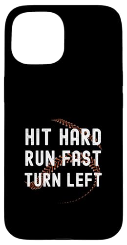 Hit Hard Run Fast Turn Left Baseball Softball Pun Baseballer Coque pour iPhone 15
