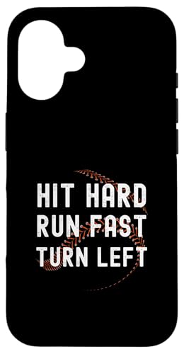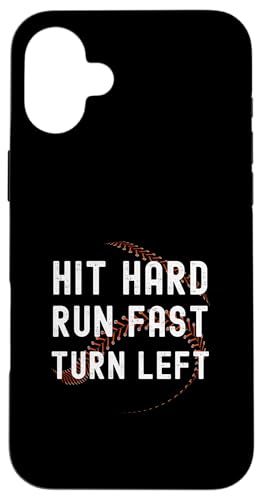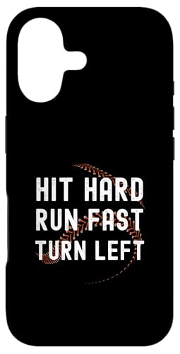 Hit Hard Run Fast Turn Left Baseball Softball Pun Baseballer Coque pour iPhone 16