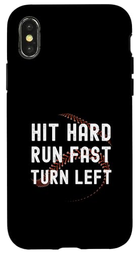 Hit Hard Run Fast Turn Left Baseball Softball Pun Baseballer Coque pour iPhone X/XS