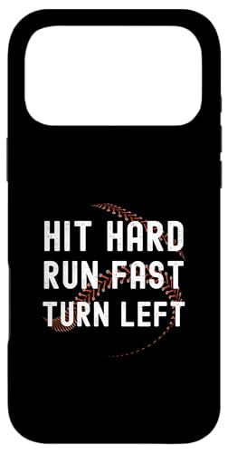 Hit Hard Run Fast Turn Left Baseball Softball Pun Baseballer Coque pour iPhone 17 Pro