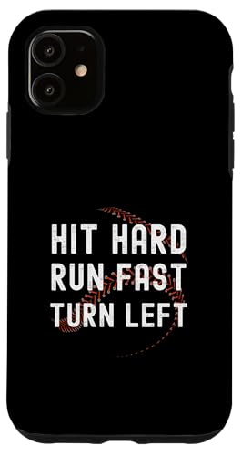 Hit Hard Run Fast Turn Left Baseball Softball Pun Baseballer Coque pour iPhone 11