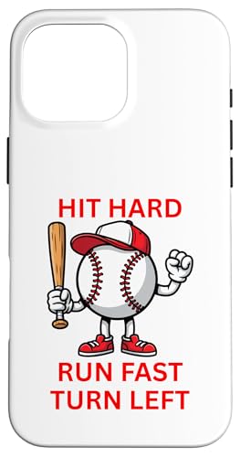 Design de Joueur de Baseball Hit Hard Run Fast Turn Left Coque pour iPhone 16 Pro Max