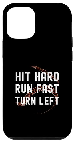 Hit Hard Run Fast Turn Left Baseball Softball Pun Baseballer Coque pour iPhone 12/12 Pro