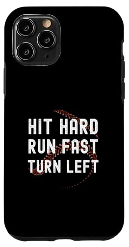 Hit Hard Run Fast Turn Left Baseball Softball Pun Baseballer Coque pour iPhone 11 Pro