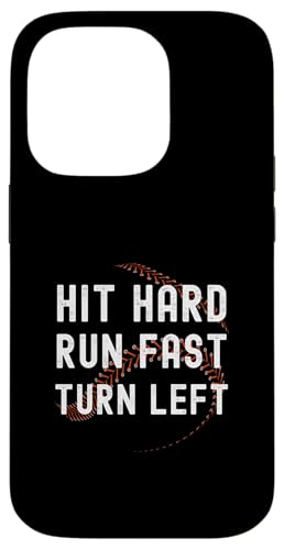 Hit Hard Run Fast Turn Left Baseball Softball Pun Baseballer Coque pour iPhone 14 Pro
