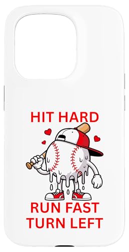 Hit Hard Run Fast Turn Left Melting Baseball Cartoon Coque pour iPhone 15 Pro