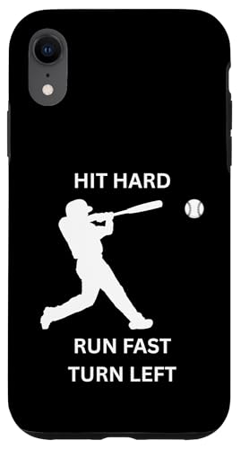 Design de Joueur de Baseball Hit Hard Run Fast Turn Left Coque pour iPhone XR