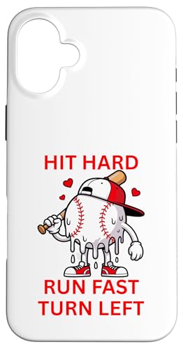 Hit Hard Run Fast Turn Left Melting Baseball Cartoon Coque pour iPhone 16 Plus