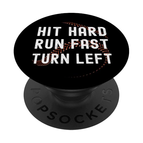 Hit Hard Run Fast Turn Left Amusant Joueur de Baseball et Softball PopSockets PopGrip Adhésif