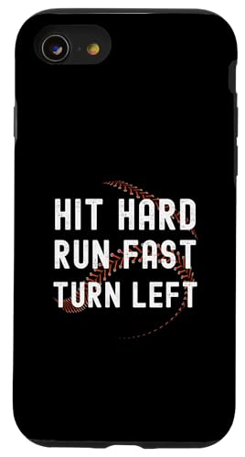 Hit Hard Run Fast Turn Left Baseball Softball Pun Baseballer Coque pour iPhone SE (2020) / 7/8