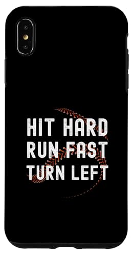 Hit Hard Run Fast Turn Left Baseball Softball Pun Baseballer Coque pour iPhone XS Max