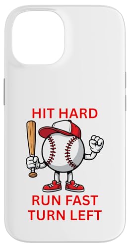 Design de Joueur de Baseball Hit Hard Run Fast Turn Left Coque pour iPhone 14
