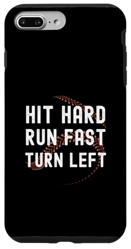 Hit Hard Run Fast Turn Left Baseball Softball Pun Baseballer Coque pour iPhone 7 Plus/8 Plus
