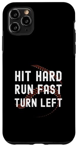 Hit Hard Run Fast Turn Left Baseball Softball Pun Baseballer Coque pour iPhone 11 Pro Max