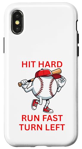 Design de Joueur de Baseball Hit Hard Run Fast Turn Left Coque pour iPhone X/XS