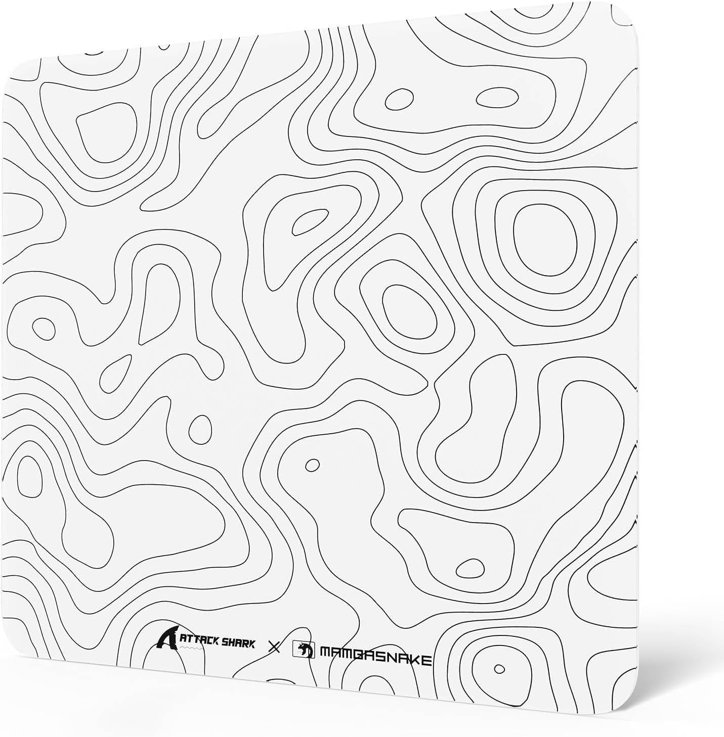 MAMBASNAKE x ATTACK SHARK CM05 Contour Glass Hard Gaming Mousepad,Nano-Micro-Etched Texture,Smooth Glass Surface,High Accuracy,Fast-Moving,Anti-Scratch, PU Leather Non-Slip Base, Large Size(450×400mm)
