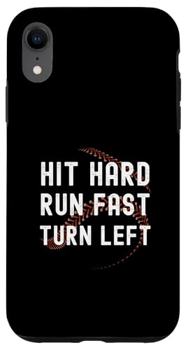 Hit Hard Run Fast Turn Left Baseball Softball Pun Baseballer Coque pour iPhone XR