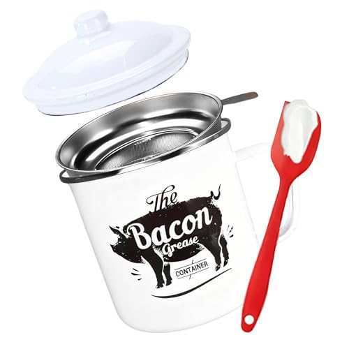 Générique Bacon Grease Container – 1200ml Oil Storage Can, Fine Mesh Strainer, Silicone Spatula Included | Fat Keeper Dispenser for Kitchen Baking Brunch Holiday Meal Prep