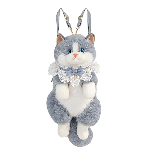 Sac à dos en peluche pour chat - 55 cm, fausse fourrure douce, blanche moelleuse, porte-monnaie mignon, sac à bandoulière pour chaton de dessin animé, accessoire léger et fantaisiste au quotidien |