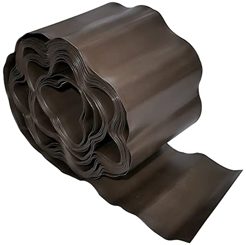 Vigevee Bordure de pelouse en plastique - Facile à utiliser - Rouleau de bordure de parterre pour chemins, bordures, chemins de graviers - Bordure invisible (longueur 25 m - hauteur 10 cm, marron)