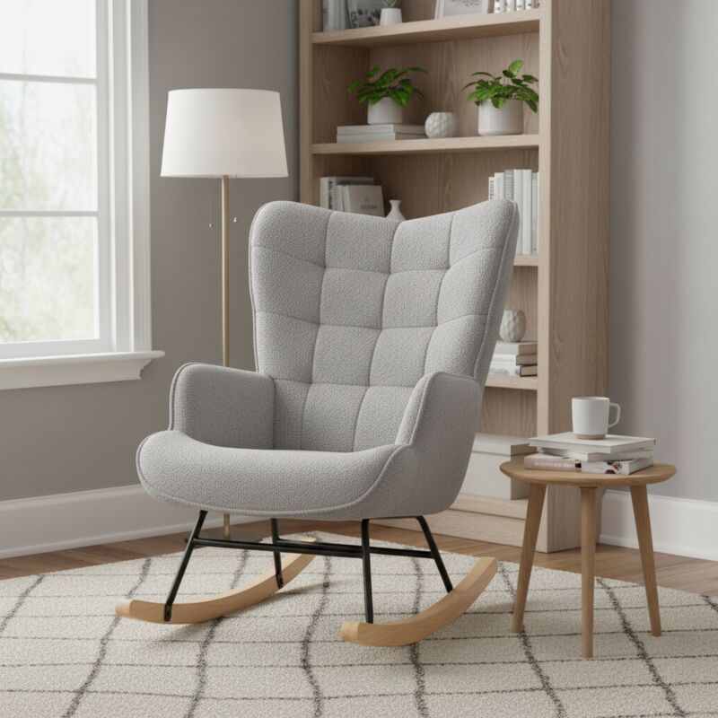 Fauteuil à bascule rocking chair revêtement bouclette structure en acier 71 x 98 x 101 cm gris clair