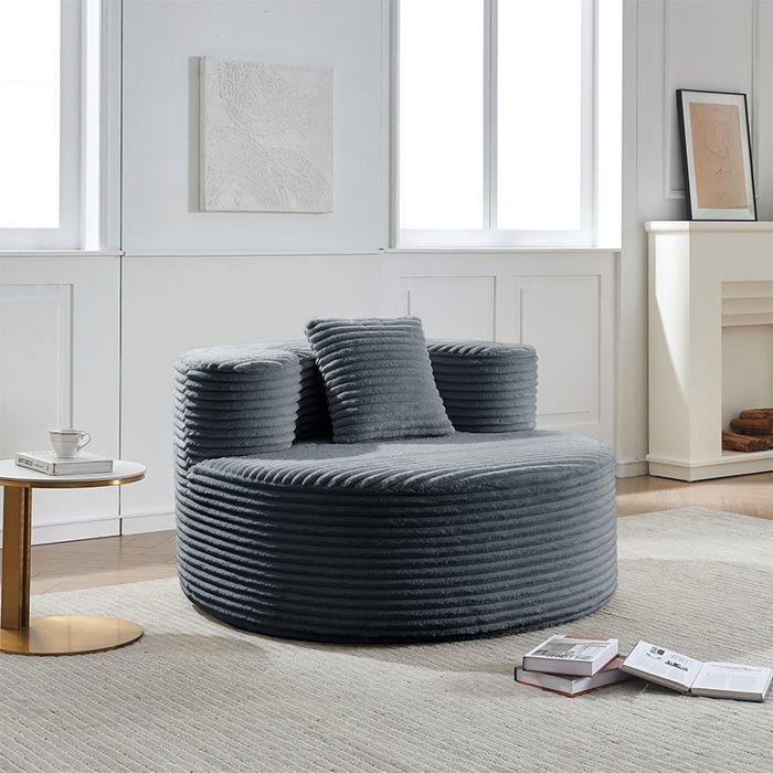 Pouffe Fauteuil LINHOO Velours Côtelé Nuage Gris Confortable pour Adulte et Ado